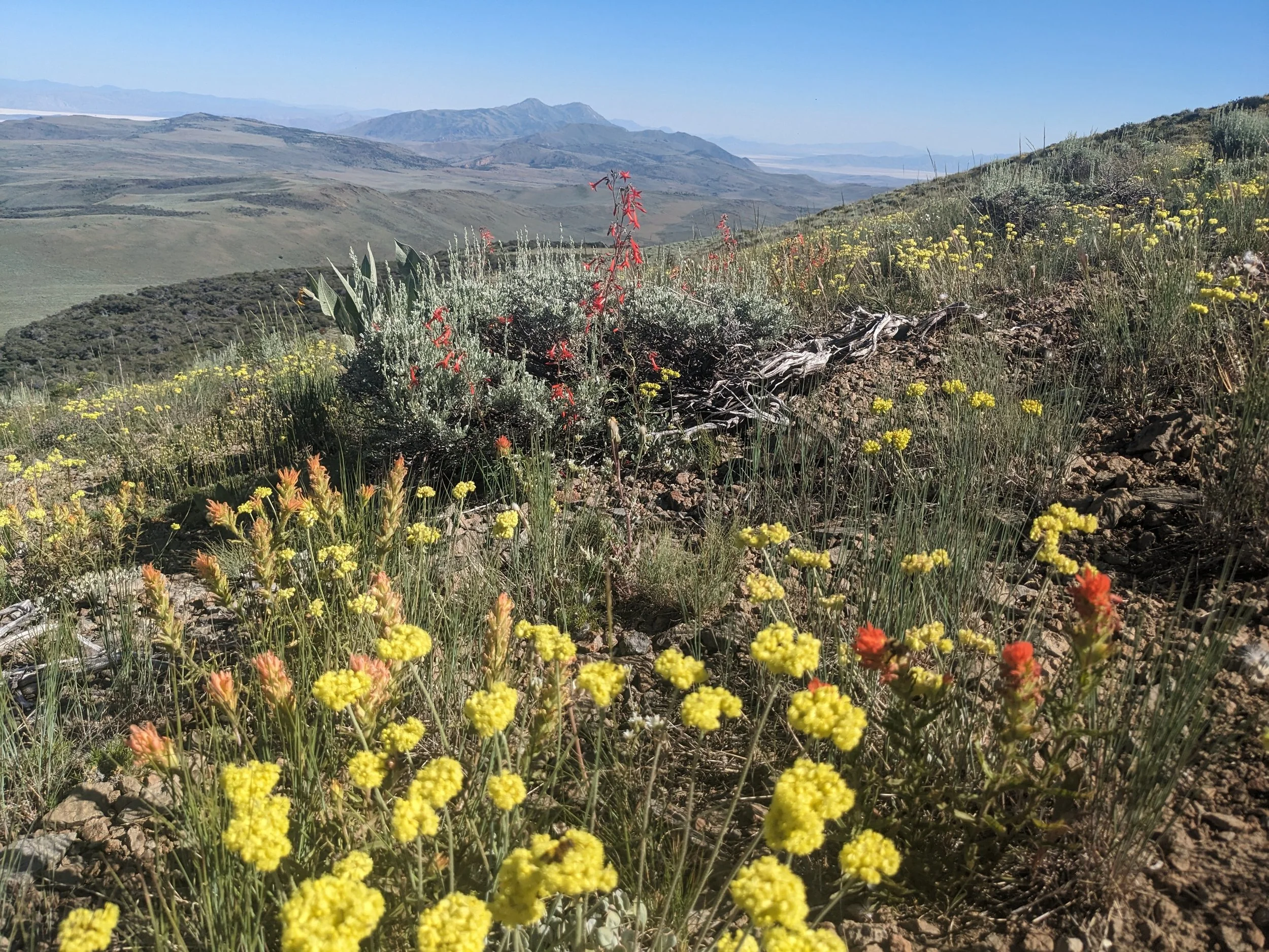 One of the best places to view wildflowers is in the low sagebrush plant communities near Stevens Camp during late May and early June. There is always something blooming here, including brilliant yellow buckwheat, blue lupine and white bitterroot.