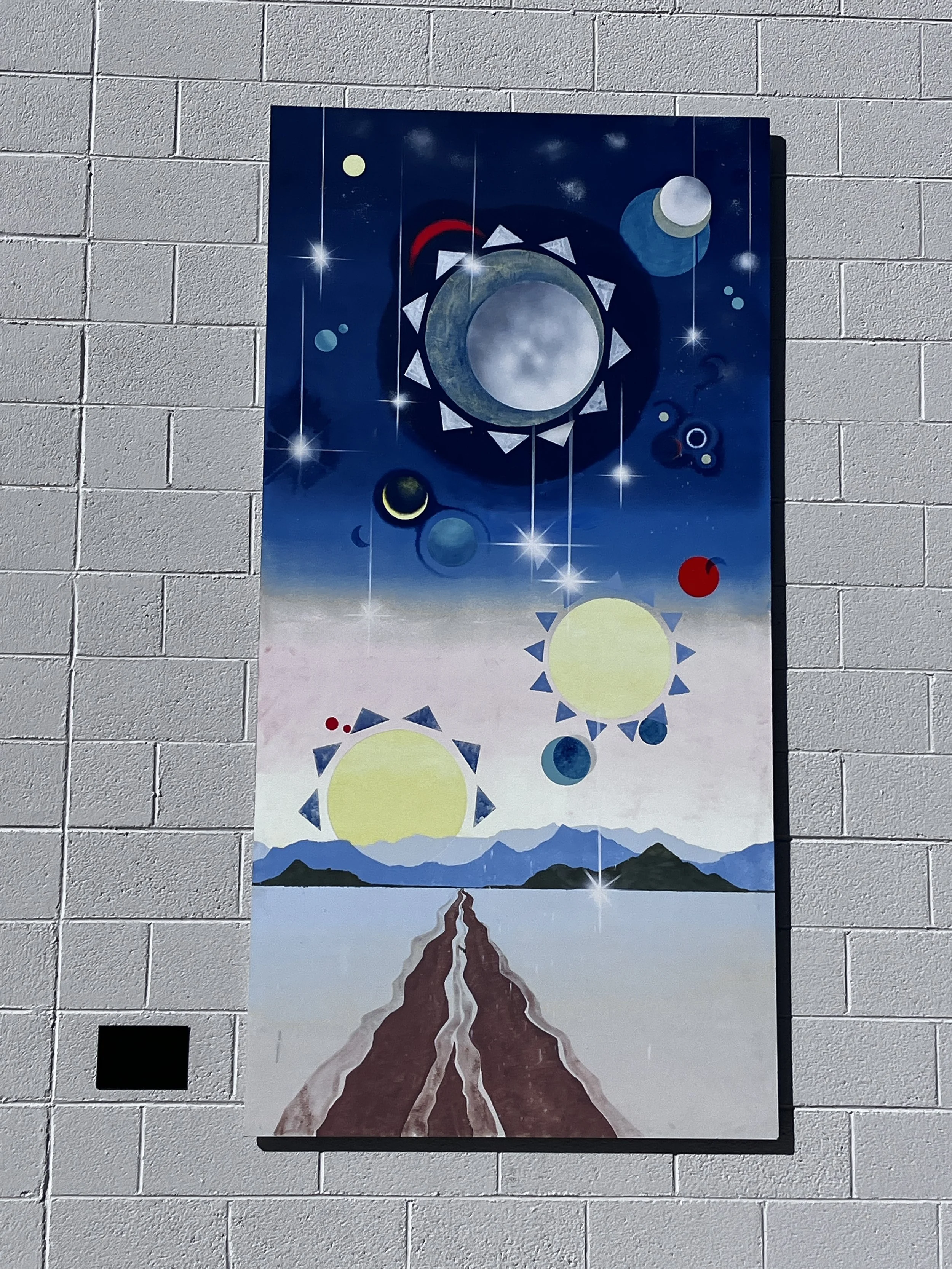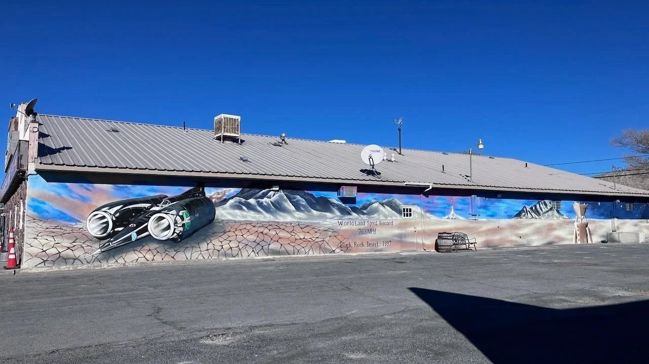 The Black Rock Desert is a vast and untamed expanse and has long been a stage for extraordinary feats—from the record-breaking speed of Thrust SSC to the artistic explosion of Burning Man. In the heart of Gerlach, Bruno’s stands as a legendary gathering place, where history and community intertwine. This mural is a tribute to the land, the speed, and the creativity that help define this remarkable place.