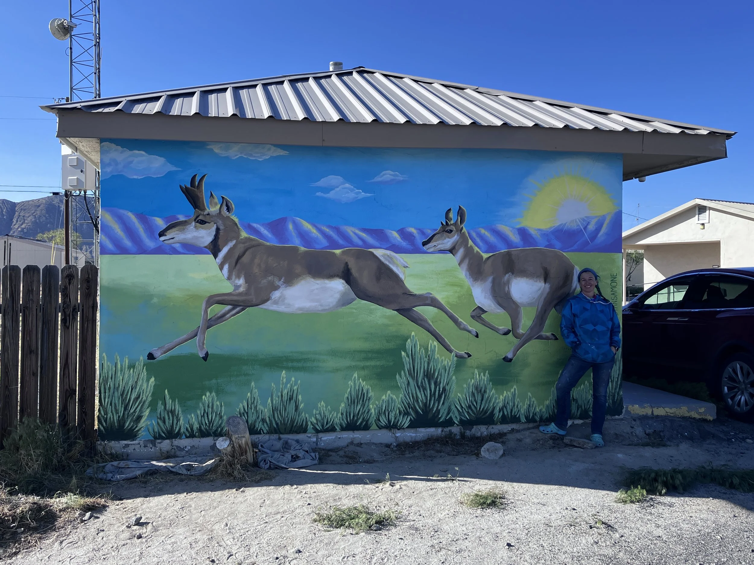 Alyssa Cumpton lives and works in Elko, Nevada. In 2024, she was the Artist-in-Residence with the Black Rock Desert-High Rock Canyon Emigrant Trails National Conservation Area and Friends of Black Rock-High Rock. Her work explores the natural world and hopes to bring about an appreciation of wild spaces across the country. She works in several mediums, including traditional acrylic painting, chalk art and murals. Alyssa was commissioned by a local property owner to paint another mural in town. Take a side trip down Del Ora Road and you might spot it.