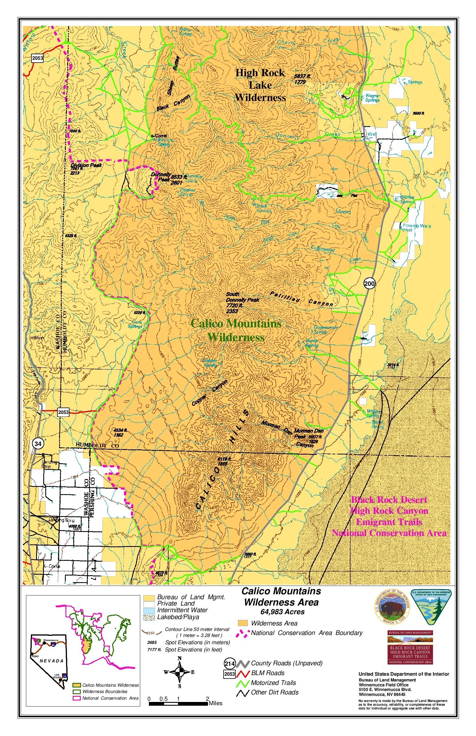 The Calico Mountains Wilderness is located in western Humboldt and northern Pershing Counties, approximately 30 miles north of the town of Gerlach.